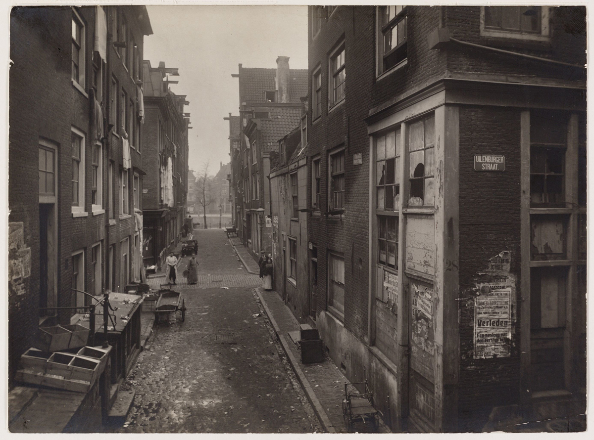 Stadsarchief Amterdam, beeldbank / Martelhoff, J.H. (1876-1959). Eerste Batavierdwarsstraat. Gezien van de Uilenburgerstraat naar de Oudeschans. Rechts op de hoek Uilenburgerstraat 28, ca, 1923. 010118000204.