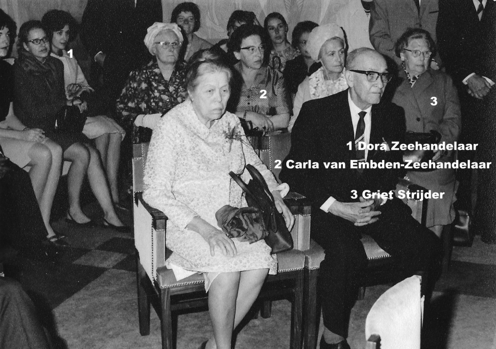 Kaatje (Carla) van Embden – Zeehandelaar (Amsterdam, 20 januari 1909 – Amsterdam, 4 december 1989), weduwe van Barend van Embden (Amsterdam, – Birkenau, ) en enig kind van Israël Zeehandelaar (Lemsterland, 26 augustus 1870 – Sobibor, 7 mei 1943) en Dora Meijer (Hamburg, 15 oktober 1869 – Sobibor, 7 mei 1943). Barend werd in de oorlog in Haarlem gearresteerd. Carla vond een nieuw onderduikadres en overleefde de oorlog. Ze kreeg in 1946 haar huis aan de Kuinderstraat 26hs terug maar bleef op de Madurastraat wonen, en ook haar nichtje en oorlogswees Doortje, Dora Zeehandelaar woonde bij haar. De kleindochter van Grietje van der Sluis zei oma Carla tegen haar en tegen Dora tante Doortje.