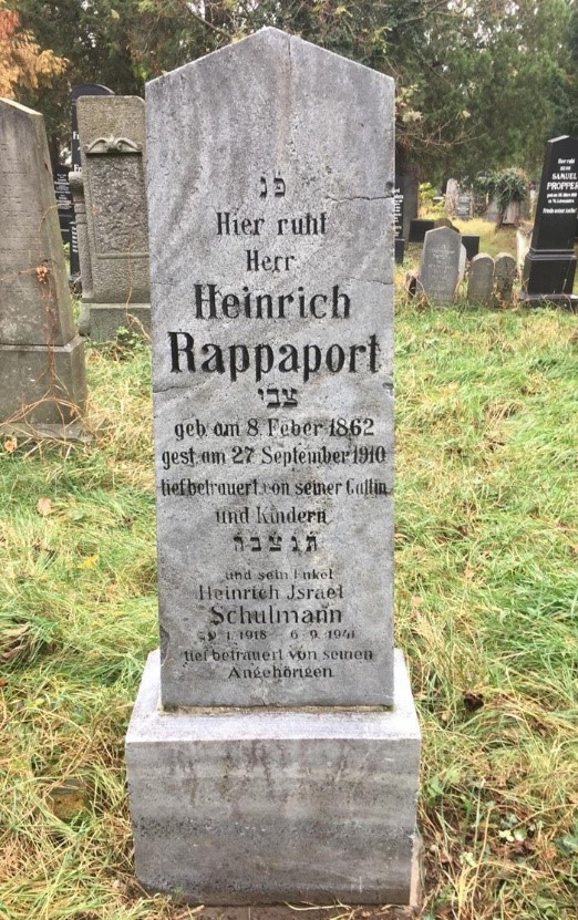Op 15 december werd de ‘as van Heini’ op verzoek van zijn vader Joachim bijgezet in het graf van zijn opa Heinrich Rappaport die in 1910 op de Weense Joodse begraafplaats was begraven. Dit betekent dat Joachim contact heeft gehad met de SS-autoriteiten in Mauthausen die in dit soort gevallen een schepje as van de grote berg schepten en in een kartonnen koker verstuurden aan de nabestaanden. Heinrichs oma Cyla liet op haar kosten de naam van haar kleinzoon graveren in de grafsteen. In de loop van decennia raakte de steen vervuild en onleesbaar. In 2018 lieten de Australische nabestaanden de steen restaureren waarbij de naam van Heinrich én de destijds vals opgegeven overlijdensdatum en -plaats tevoorschijn kwamen. Pas na bijna 80 jaar kwam de familie te weten dat de destijds 23-jarige Heinrich in de gaskamer van Hartheim vermoord was.