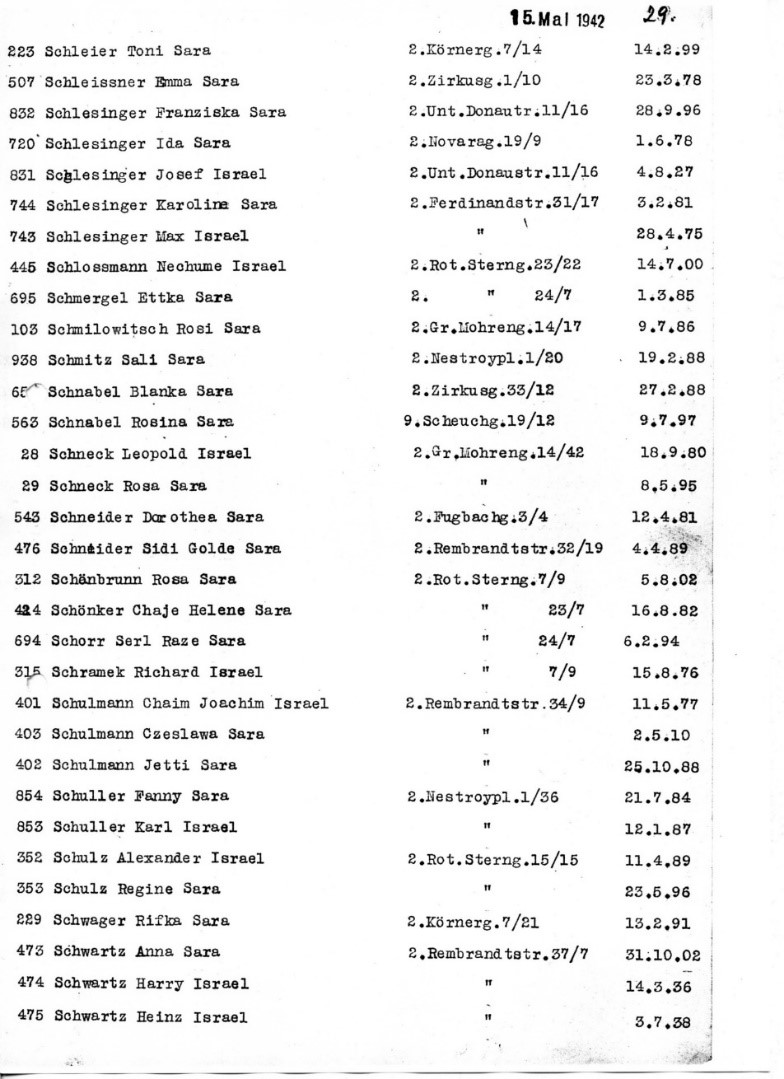 Joachim Schulmann, Jettka Rappaport en dochter Cesia werden op 15 mei 1942 met een groot transport van 1001 Joden vanuit Wenen naar Izbica Krasnistaw Lublin in Polen gedeporteerd. Hun exacte datum van overlijden is niet bekend. Ook oma Cyla werd op transport gesteld. Zij kwam in Riga om het leven. Van het gezin Schulmann was niemand meer over.