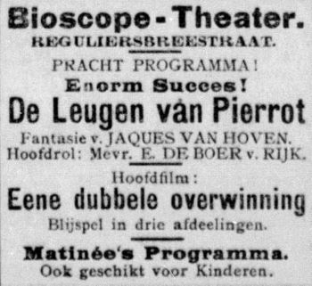 De leugen van Pierot, Advertentie. “De Telegraaf”. Amsterdam, 18-08-1915, p. 3. Geraadpleegd op Delpher op 02-04-2024, https://resolver.kb.nl/resolve?urn=ddd:110548304:mpeg21:p003.