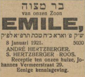 “Familiebericht Herzberger”. “Nieuw Israelietisch weekblad“. Amsterdam, 31-12-1920. Geraadpleegd op Delpher op 01-01-2017, http://resolver.kb.nl/resolve?urn=ddd:010859816:mpeg21:a0075 .