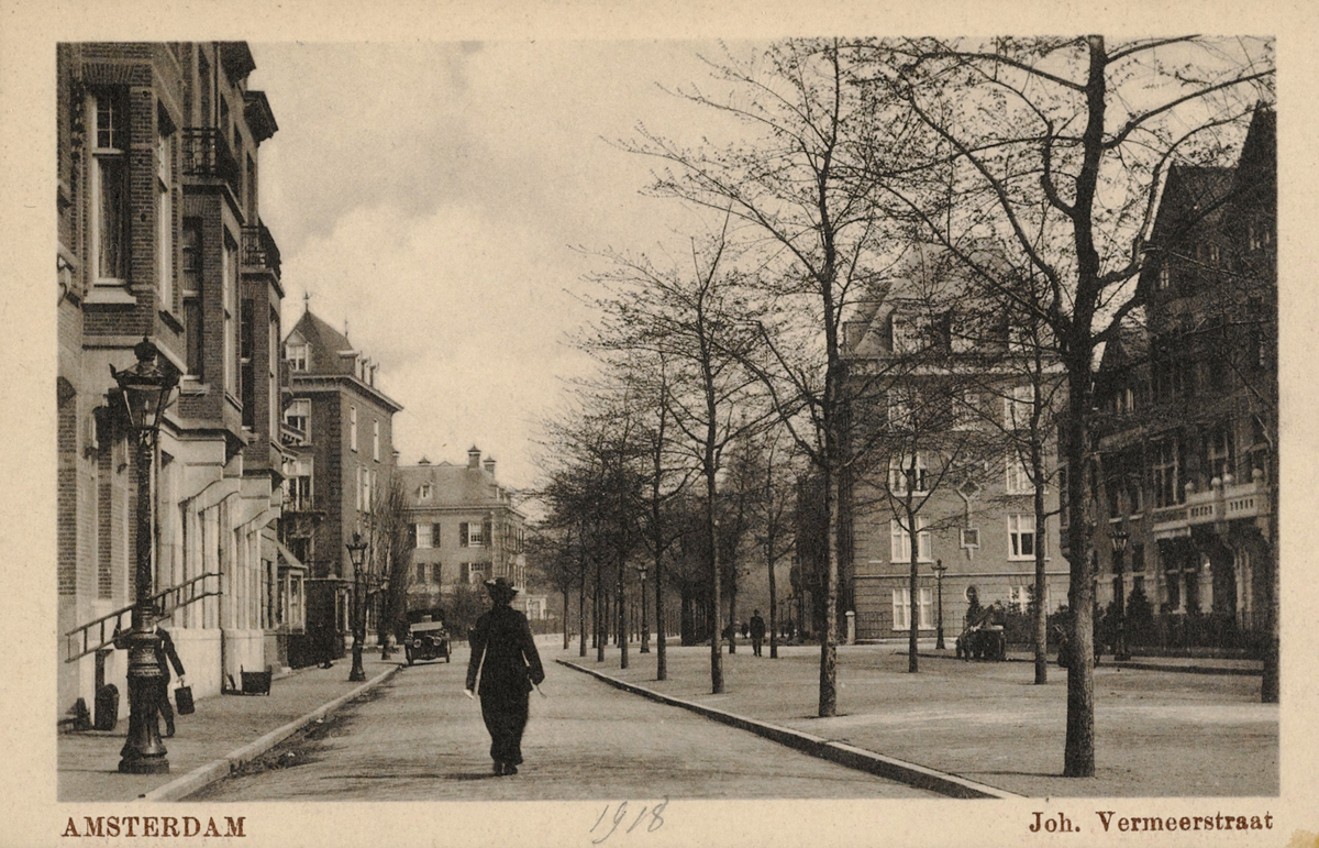 Stadsarchief Amsterdam, beeldbank. Johannes Vermeerstraat gezien richting Rijksmuseum, prentbriefkaart. 1918. PRKBB00488000002.
