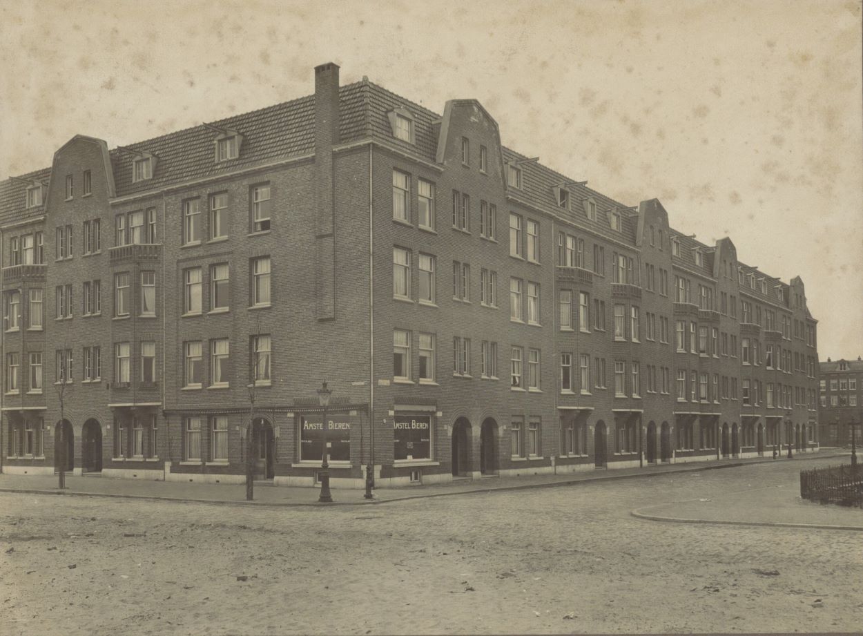 Stadsarchief Amsterdam, beeldbank. Lutmastraat 95-99 (links, v.l.n.r.), hoek Henrick de Keijserplein 2-20 (rechts, v.r.n.l.), gezien in noordwestelijke richting. 1916. Collectie Archief van de Dienst Bouw- en Woningtoezicht: foto’s. ANWZ01315000001.