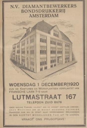 Lutmastraat 167 – N. V. Diamantbewerkers bondsdrukkerij Amsterdam