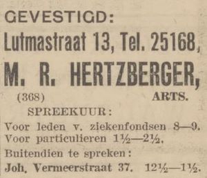 Lutmastraat 13 – arts M. R. Hertzberger
