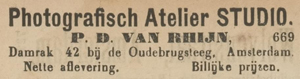 “Advertentie P D van Rhijn”. “Het nieuws van den dag : kleine courant”. Amsterdam, 1891/12/08 00:00:00, p. 12. Geraadpleegd op Delpher op 28-05-2020, http://resolver.kb.nl/resolve?urn=ddd:010140281:mpeg21:p012.