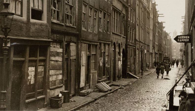 Valkenburgerstraat 75-77 richting Jodenbreestraat. Collectie Stadsarchief Amsterdam beeldbank, foto-afdrukken OSIM00002000049stadsarchief Amsterdam .